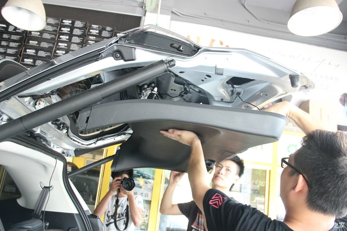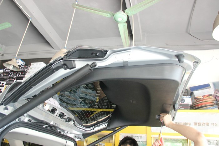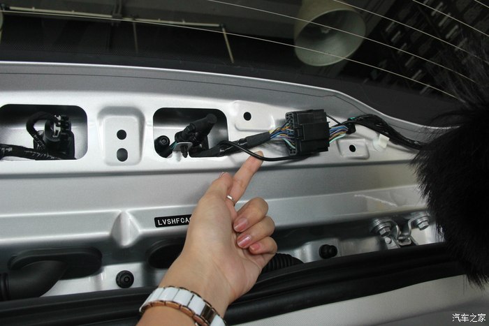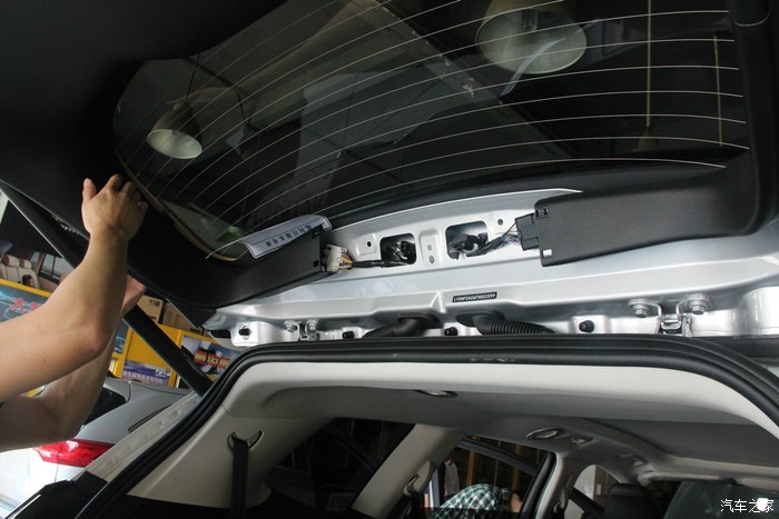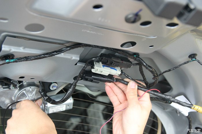 16.走线也不允,就是看到有缝的位置用刮板把线塞进去,一直走到中控。这就完成了后摄像头的工作了!