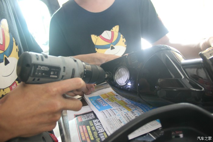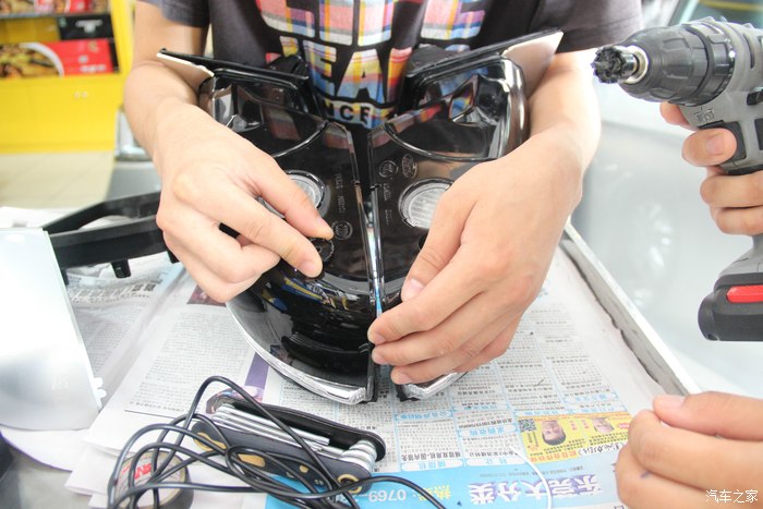 千万不要没进行比对就打孔,先得确认盖板位置会不会挡到?嗯,我们发现左边倒后镜和右边倒后镜原来长得不一样。不过没事,继续研究。
