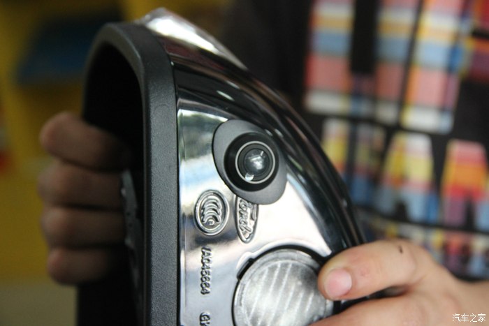 嗯,四个摄像头,前后左右,各一个,前面是福特LOGO下面,后面是牌照灯位置,左和右是倒车镜下面钻个小孔直接放专用摄像头。还有嘛,对,原车的倒车摄像头和加装倒车摄像头只能选一个使用!也就是倒车时到底用哪个摄像头?我的是直接用加装的,因为也不用打孔,反正一定会送我一个,我为什么不用呢?