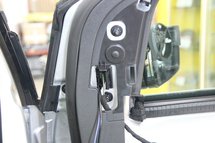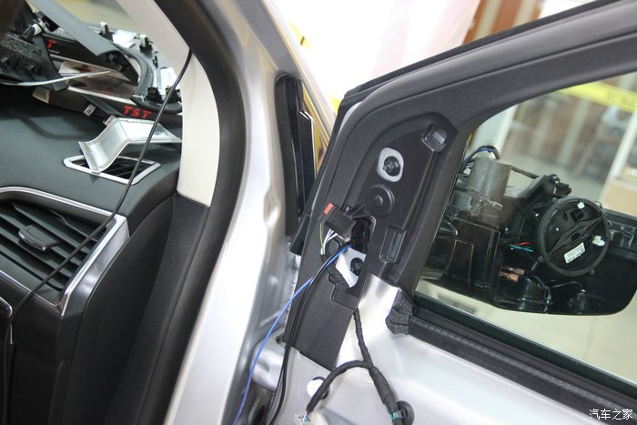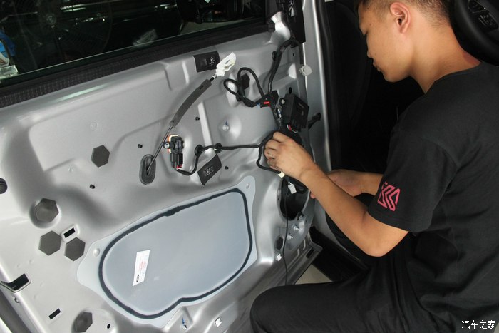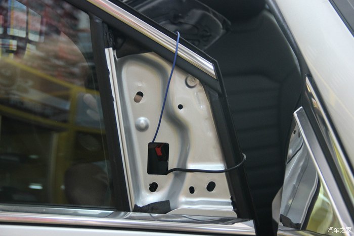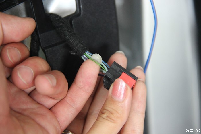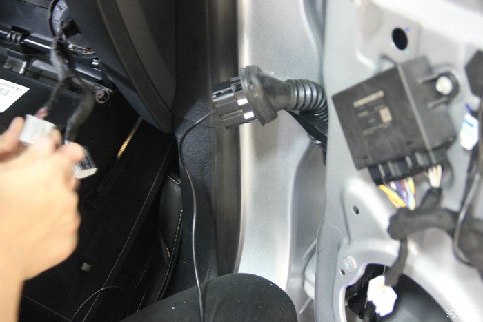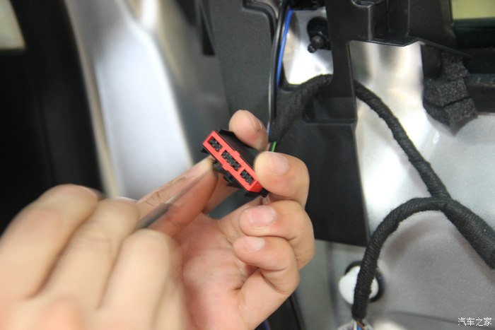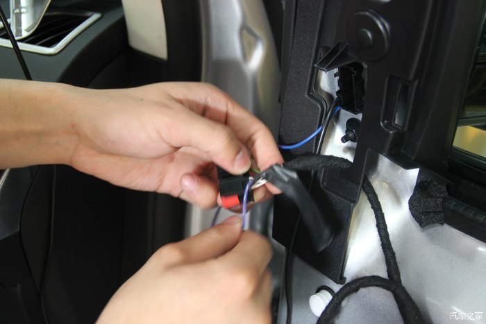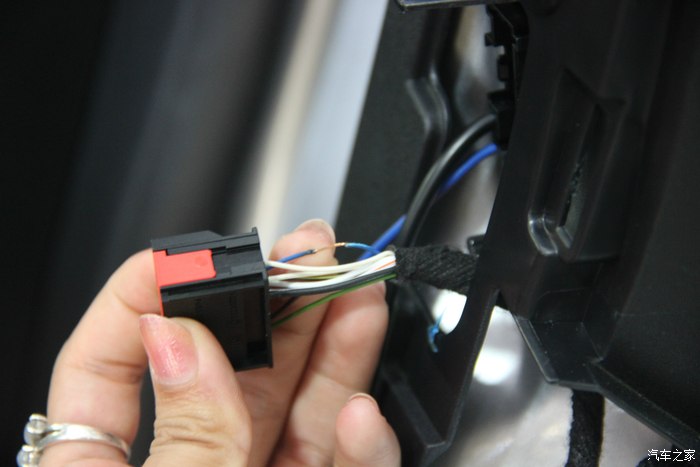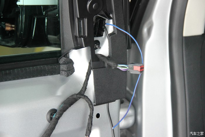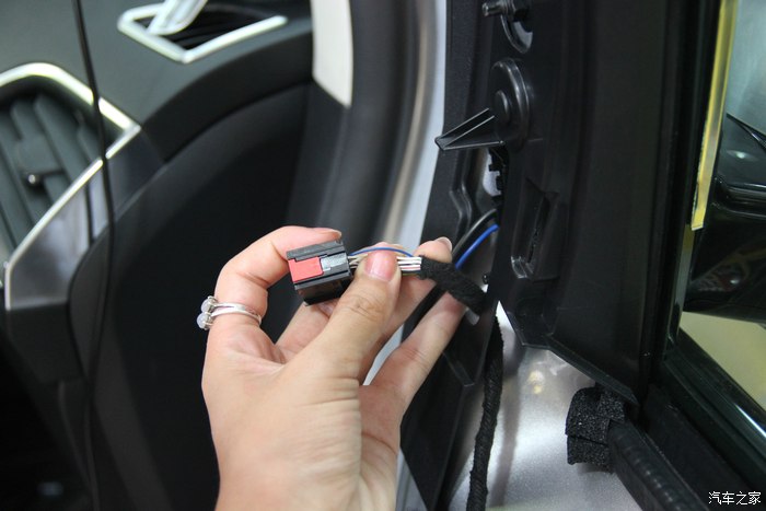 40.原车门有这个总成插头位,没错引进来后从中间开条小线槽,把线压进去。