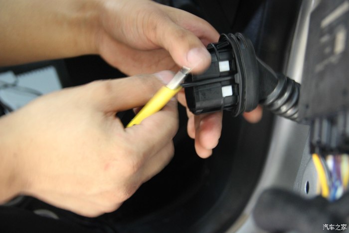 35.就是从这个倒后镜总插头里找线,找到左右转向灯感应线。用电笔就可以找出来哈!