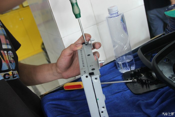 5.上面的后视镜盖板也取下,可以看到其实后视镜由三个镙丝固定的,拧开三个镙丝,倒后镜就可以整个取下来了!是不是有点重口味,习惯了就好!我相信他们很快就可以把它恢复得好好的。