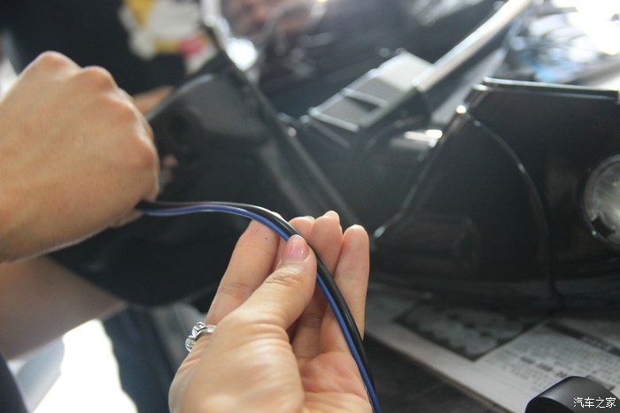 30.我们的师傅说其实这个白色线可以直接接转向灯的线,不过为了方便,他们会把线延长后,再直接接转向总插头那里的线,那样子接起来更快,下图为延长一下线。