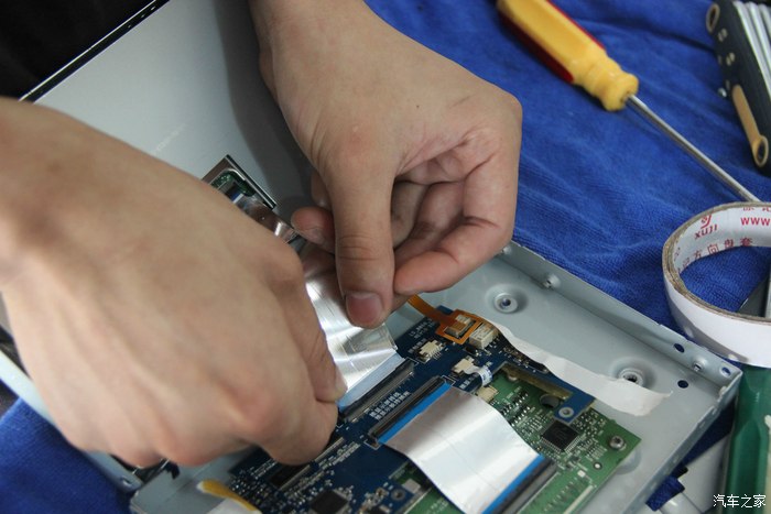 44.开始拆中控,以下步骤都是为了将屏幕主机拆下来。才能将模块加在它后面。