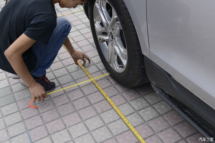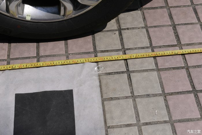 八、开始铺调试布,两侧的对准前轮着地位。刚刚量的从123cm开始。确认后用透明胶布粘紧,不让它移位。