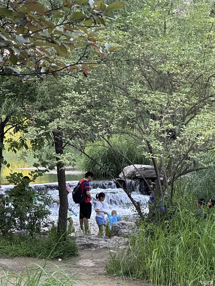 我很享受每一次开雅阁出行的周末时光。今天的奥森之行很惬意。在静心斋拍过荷花,我们往听泉轩走。这是奥森一处可以玩水的地方,很多大朋友和小朋友在踩水和捞小鱼。
