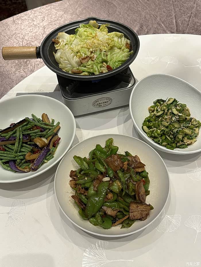 草坪也坐了,荷花也看了,水也踩了,夕阳也拍了,该去干饭了。晚饭选择奥森附近一家名叫格兰云天太极中餐厅的店吃饭。正赶上店里办婚宴,还给我们两人升级到了包间。点了一份小炒肉、长豆角烧茄子、干锅包包菜还有辣椒圈,味道都还不错。