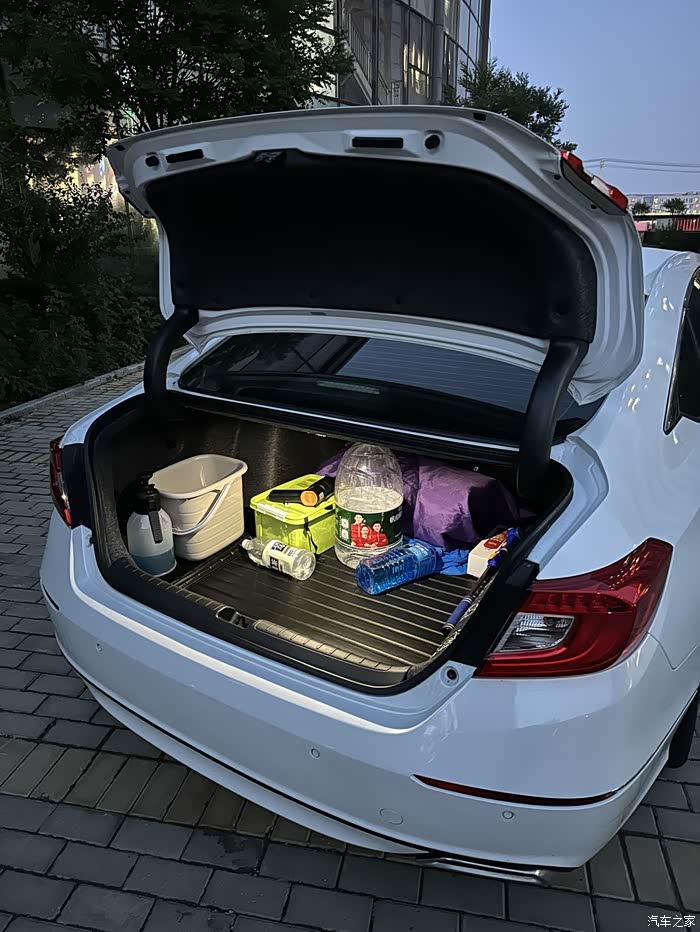 其次空间表现上,雅阁也做的不错。三厢车,车身的长宽高分别是4893/1862/1449mm,轴距2830mm,后排和后备箱都能有不错的表现空间。我的后备箱平时会放一个大的收纳箱(装擦车的一些工具),出行时还可以放下一个24寸的行李箱和一个20寸的登机箱。