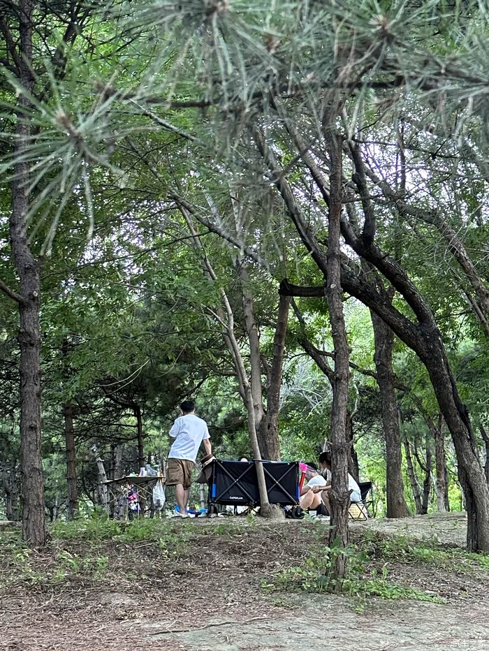 河岸上的树林里,还有人在露营、打牌。