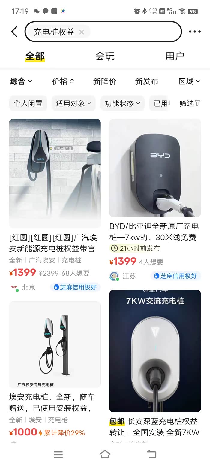 一切的缘由都是自己买车的时候没砍下来一个充电桩,既然没有要到,那就只能自己网上买了,销售说品牌的也不贵,自己看了下随便都是两千多啊,这还不贵,你大众的不是也才三千块。好在群里看到有人说可以买别人转让的充电桩权益,就是没有条件安装但是买车又送了充电桩的人,他们可以把这个充电桩转给你。