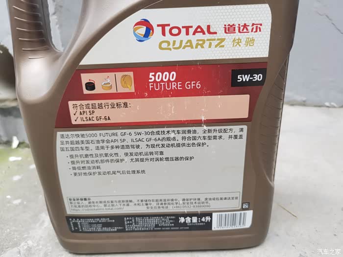 原来用黄壳,现在用道达尔半合成机油。修车师傅说是sn级,180元一桶。师傅说是sn级,我仔细看一下,是sp级