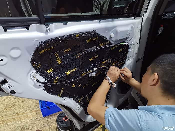 一番讨价还价,最后谈了哈曼卡顿JBL套餐送四门双层隔音,型号啥的咱也没整明白。算了就这样吧,装了再看效果(请忽略这店小师傅的小蛮腰)