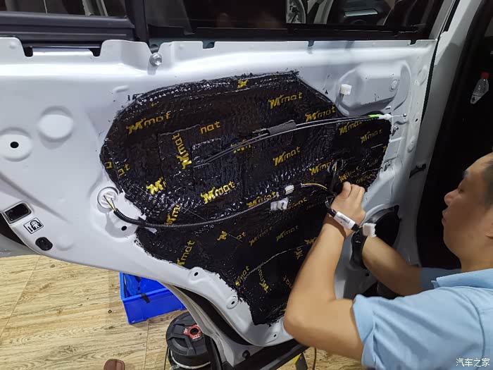 第二层隔音,贴上了止震板,老板说这样就会形成一个空腔,音响效果会好些。咱反正是不懂的,就光点头吧