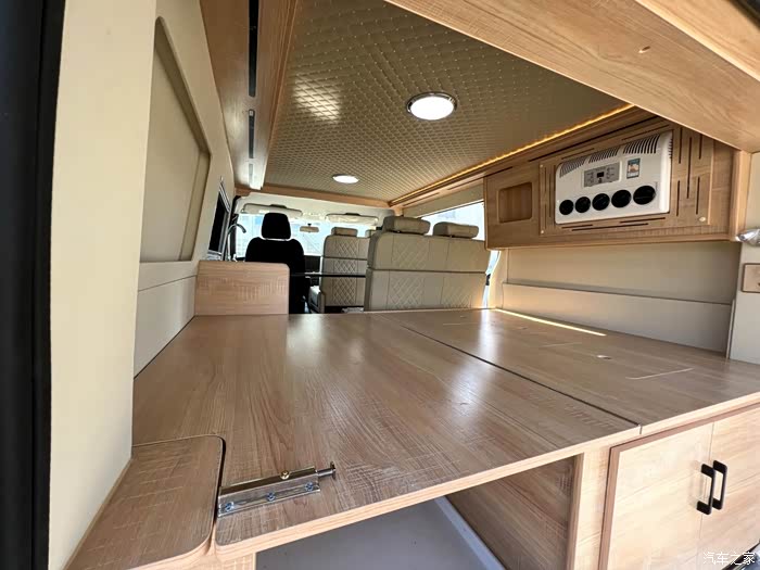 累了,后横床尺寸 1740*1250mm,拓展后可达 1740*2050mm,宽敞舒适,让你一夜好眠。想洗漱时,恒温热水系统随时提供温暖水流,100 升大容量水箱,保障旅途用水无忧。8 度电的配置,让你在野外也能享受家的便利。