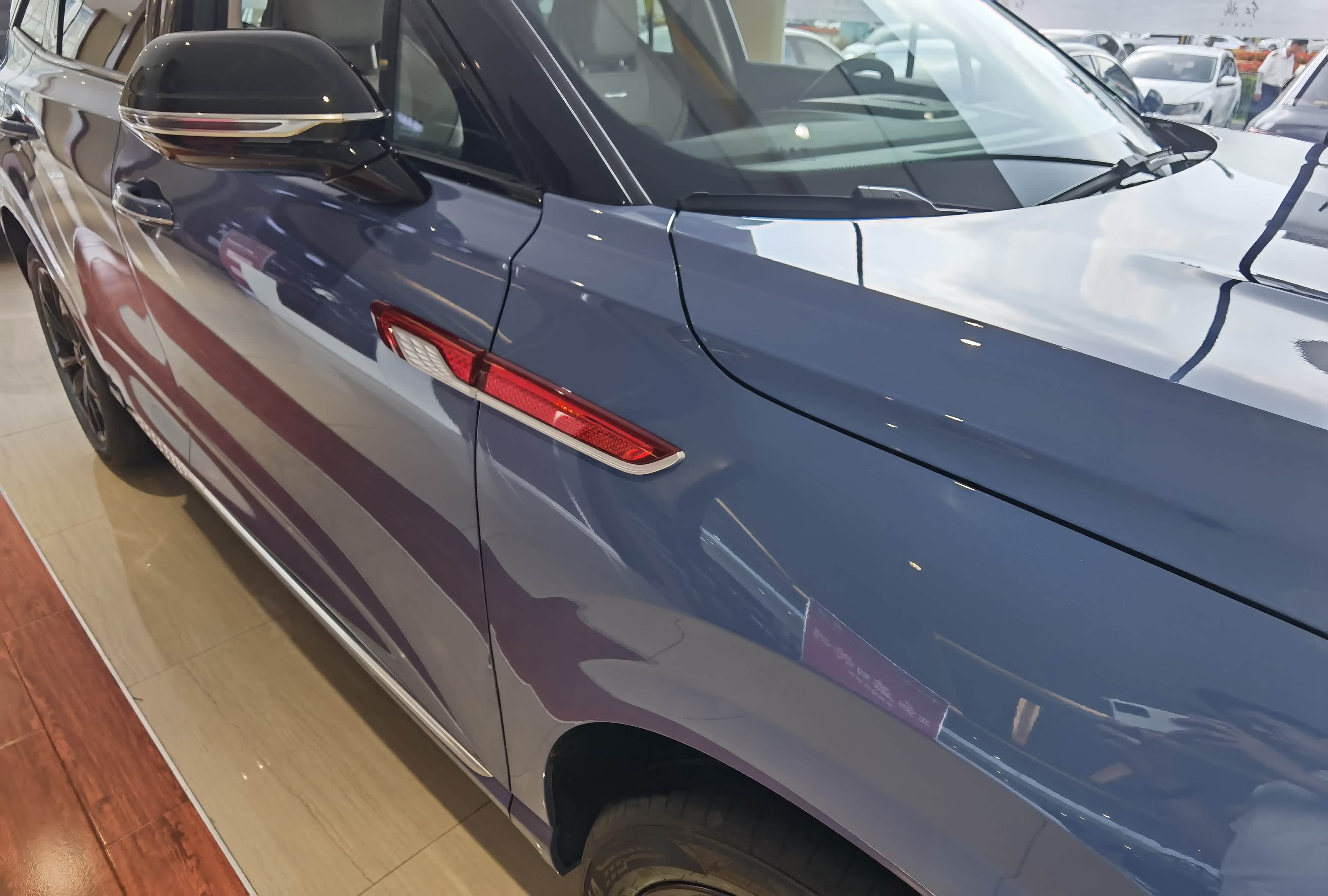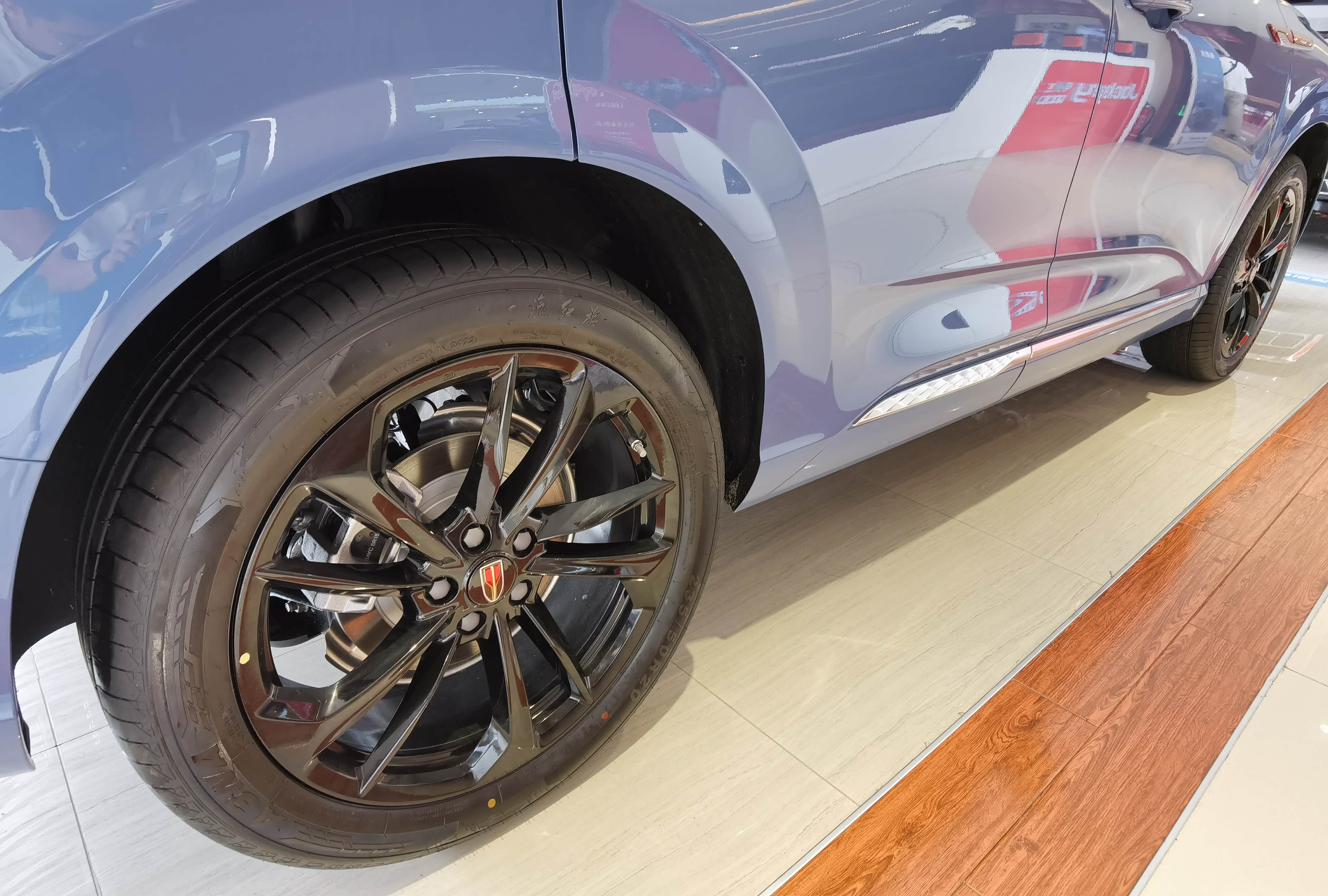 红旗HS3的外观设计堪称教科书级别的"国潮典范"。直瀑式镀铬格栅搭配可点亮式旗标灯,夜间行驶时宛如一条游动的赤龙,辨识度拉满。分体式LED大灯组与贯穿式尾灯首尾呼应,235/55 R19的大尺寸轮毂配合悬浮式车顶,将运动感与豪华感完美融合。最让我惊艳的是黑曜运动套件,红色卡钳与熏黑轮毂的组合,瞬间让整车气场提升30% 。