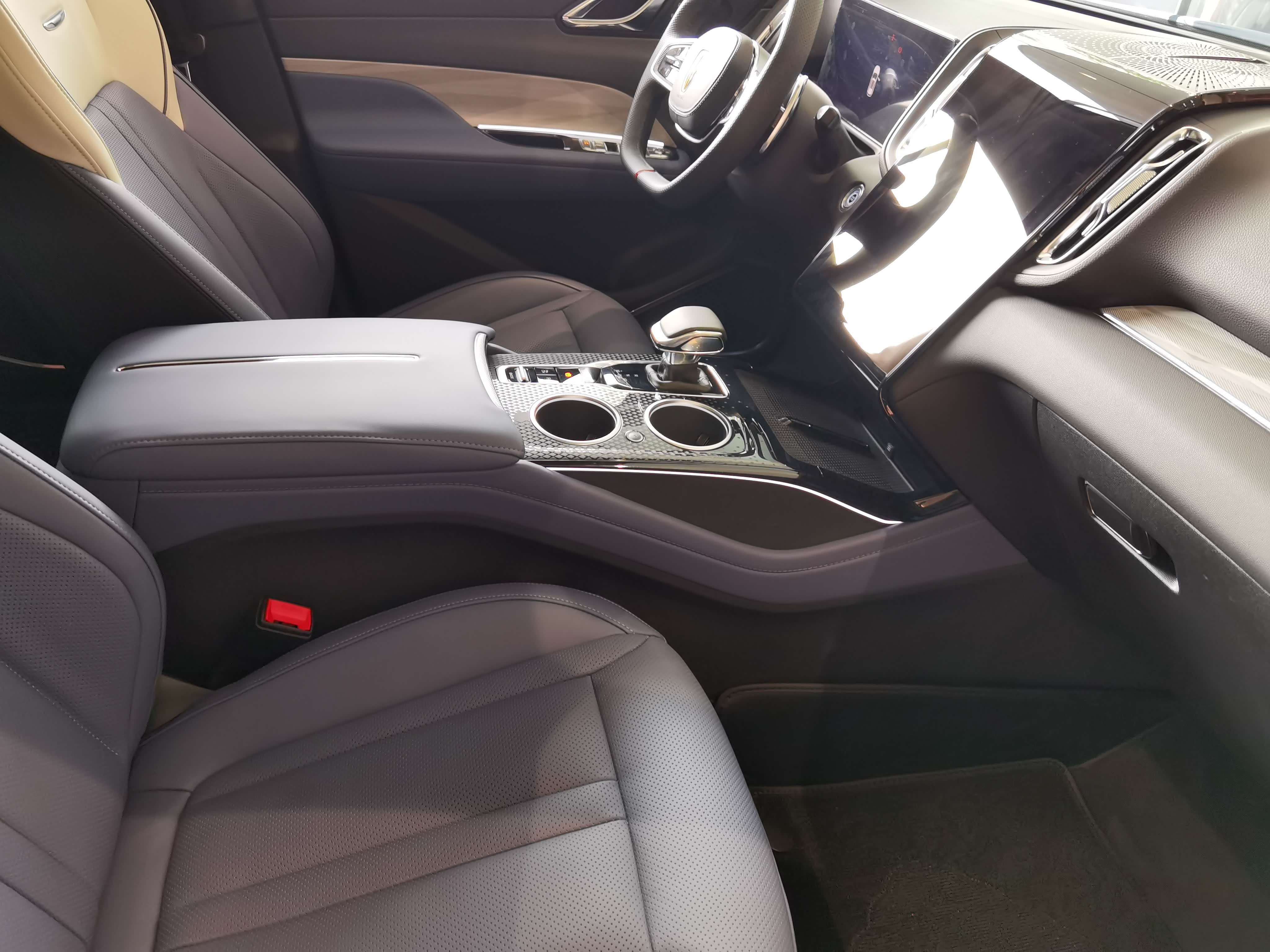 坐进车内,12.3英寸全液晶仪表+12.6英寸中控屏组成的环抱式座舱扑面而来,车机系统搭载的旗偲1.0系统支持连续语音识别和OTA升级,导航、音乐等功能响应速度媲美手机。座椅采用Nappa真皮材质,主驾12向电动调节+座椅记忆,副驾6向电动调节,长途驾驶也能保持舒适。特别值得一提的是253色氛围灯,夜间开启后宛如置身星空之下,仪式感十足。