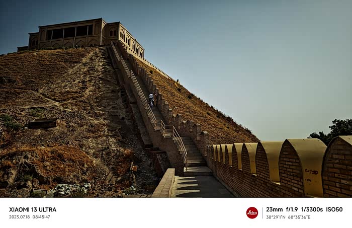 8:30用时一个小时,到达吉萨尔古城,这个古城在维修保护,现代人工制造的痕迹比较明显,但吉萨尔古城利用天然的地势,建立在一片平原的突出的山坡上,这样显得很雄伟的,吉萨尔古城其实是一个古建筑群,在方圆86公顷的土地上散落着包括吉萨尔要塞、要塞拱门、砖砌驼队客栈、老宗教学校、新宗教学校、洗礼所、大广场、马赫杜米·阿扎姆陵墓及石砌清真寺等古代遗迹。