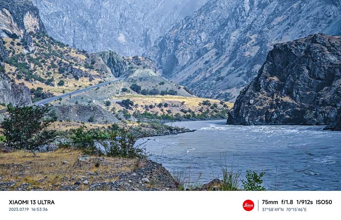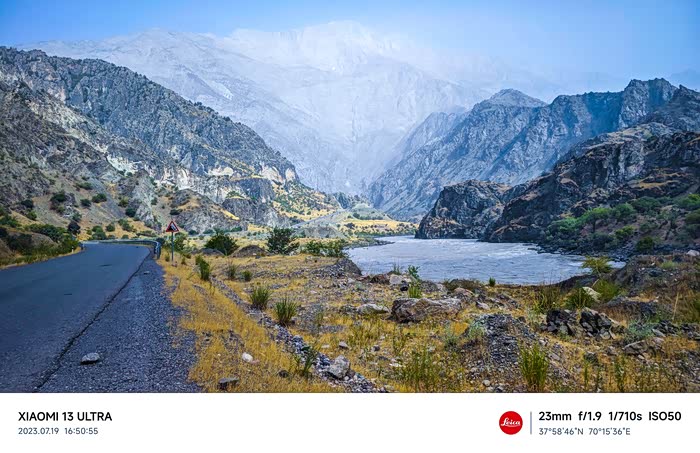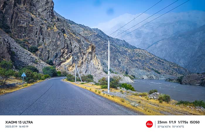 14:30到达布洛库,然后导航到塔吉克斯坦与阿富汗的界河边境公路P604去卡利埃-胡姆布,这条路也称之瓦汗走廊,过去这条路很难走,如今在中国的帮助下,刚修好双向两车道的沥青路,道路平整,通行速度加快。