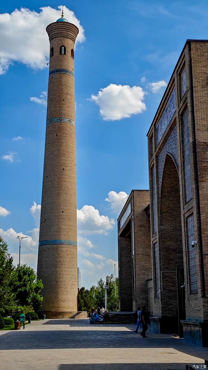 17:00出发准备到哈吉.雅库布清真寺及经学院和博物馆参观。先导航导到的博物馆,但并导到时并不是我们所要去的地方,然后导航去哈吉.雅库布清真寺及经学院路上见到一个纪念塔,在酒店旁边停车走进去参观。这纪念塔博物馆有个很大的广场,现在放了很多椅子,准备9月9日的独立日进行阅兵仪式。