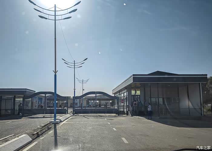 从哈萨克斯坦海关出来之后来到了中间地带,没有等待多久,乌兹别克斯坦海关的门卫开门,在检查完我们的护照之后,就放我们进入乌什别克斯坦海关车辆检查处。