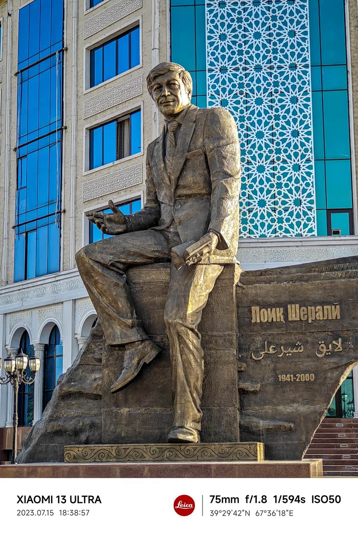 在索莫尼广场入口处矗立着一尊宏伟的雕像-伊斯梅尔?索莫尼,是波斯民族在中亚地区建立的萨曼王朝的伟大国王。在萨曼王朝统治时期,塔吉克族开始在中亚出现,因此萨曼王朝被视为是塔吉克族的第一个国家。因此索莫尼被尊为“塔吉克民族之父”。
