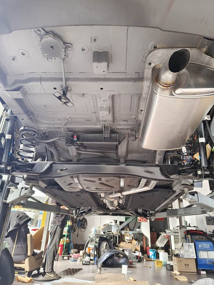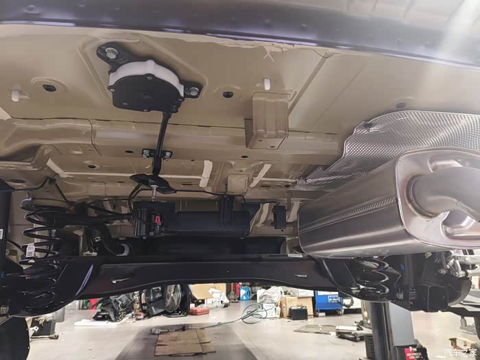 原车底盘几乎是没有做防锈喷漆,销售员说这个完全没问题,但一想这车今后很长一段时间要陪伴我,趁新车干净,直接做个底盘装甲,一方面是防锈,另一方面多少能起到点隔音作用,这是个人的想法
