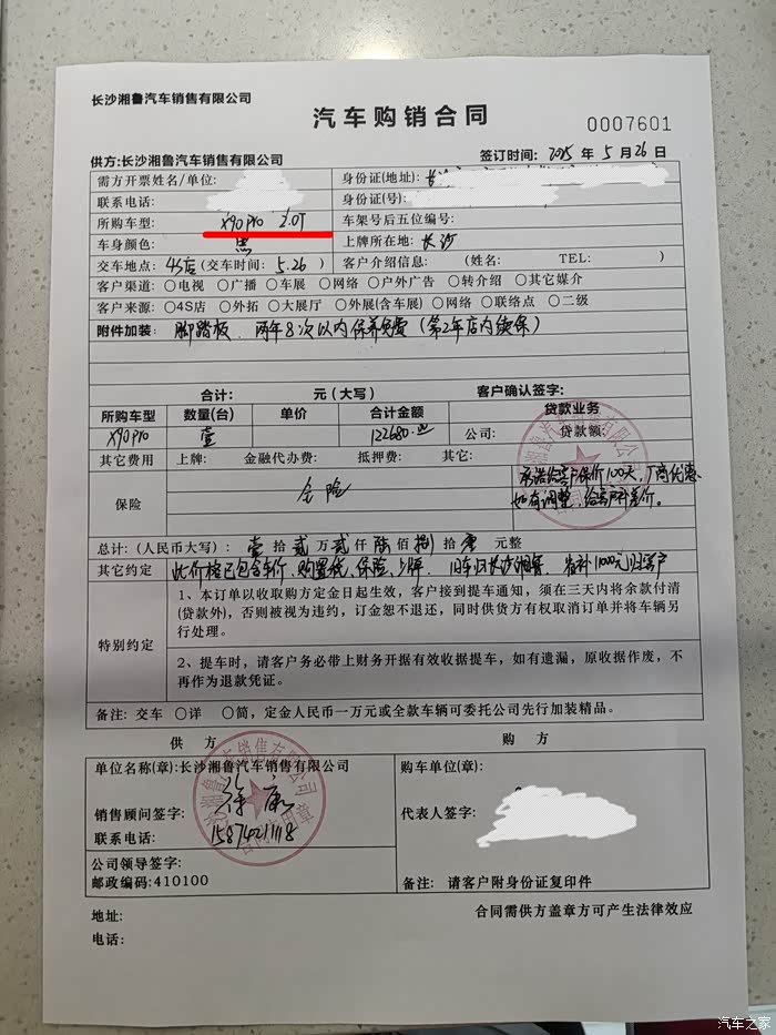 我爸在抖音上刷到奇瑞捷途的直播,说旧车抵扣5万,于是心动了,在5月27日自行前往捷途汽车长沙湘鲁体验中心4S店,在此之前并未与这家4S店及店内销售有过联系,见面后与销售口头沟通是进行的口头沟通,谈的是奇瑞捷途x90pro出厂指导价16.99万的旗舰版车型,报价单上也是按旗舰版车型算的折扣价,由于销售忽悠我爸说补贴名额只有最后几个了,于是我爸当天就下单了,付的钱也是按照报价单上的旗舰版车型折扣价来付的全款,但是4S店故意在合同上不注明车辆具体配置。