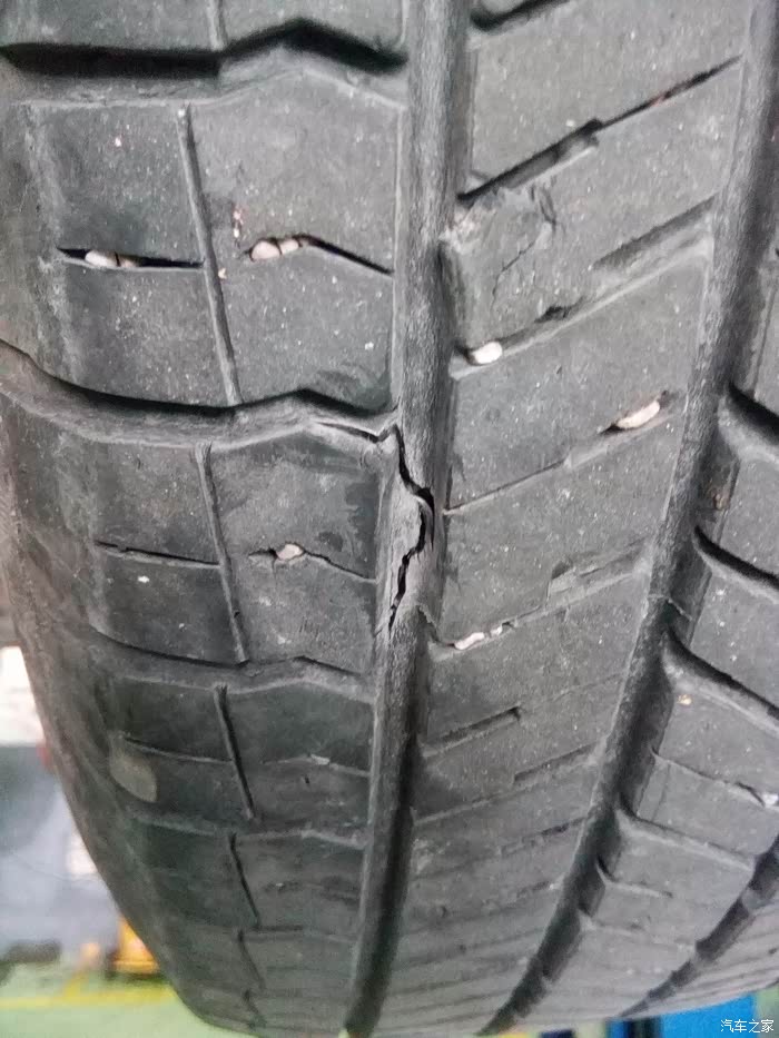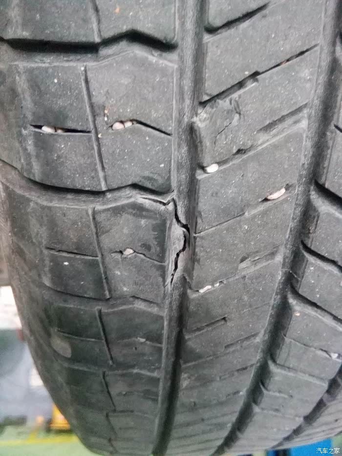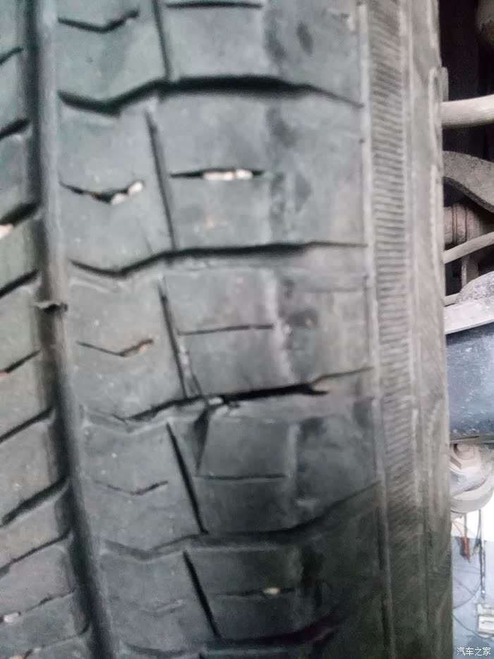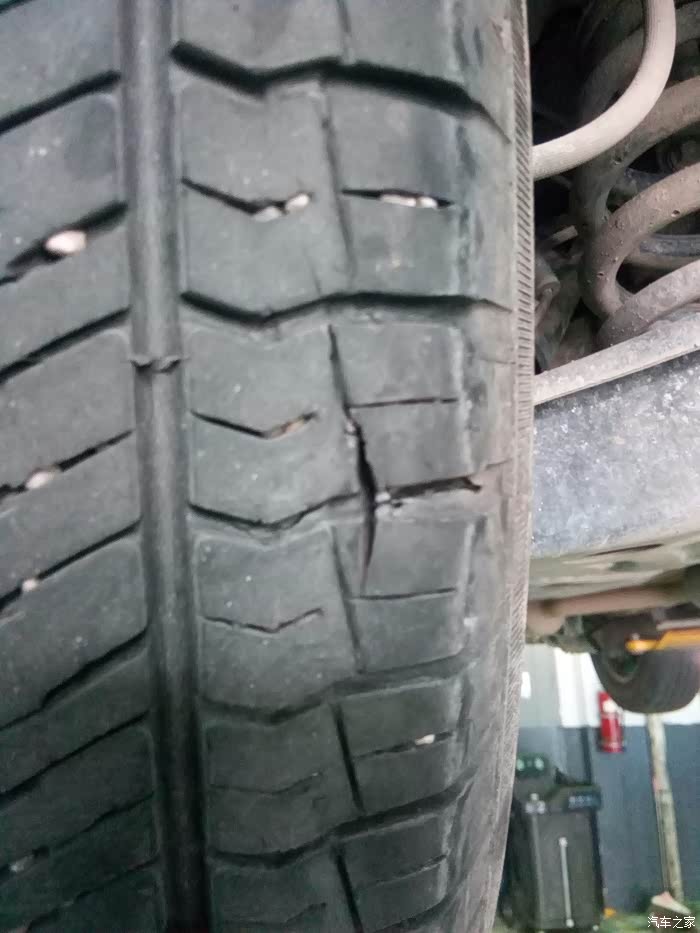 今天想把轮胎对调,升起来看到两个后轮都出了问题,倒底啥原因请帮忙指点,轮胎是优科豪马,目前行驶32185公里,还是上图先。