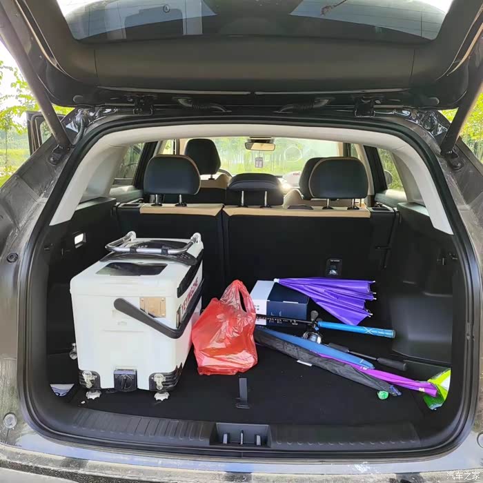 后备箱绝对给力绝对大,出门钓鱼放渔具工具,后排也可以放平休息放几个行李箱都没有问题