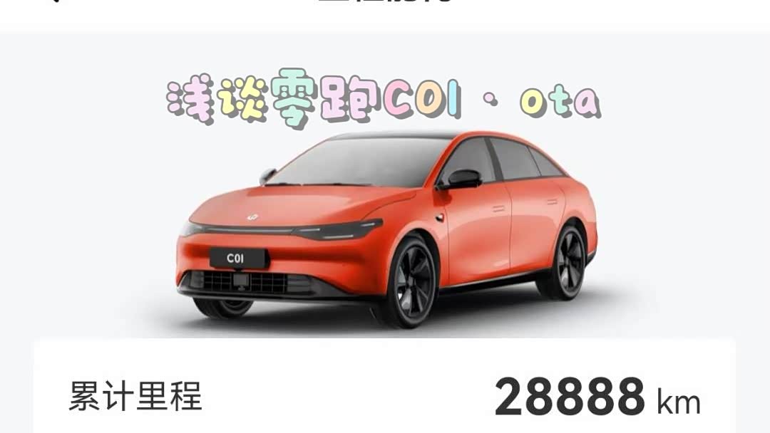 恰逢我的零跑C01行驶里程达到28888KM零跑推送了ota,那么我们就来浅谈一下100公里用车成本和这次ota推送内容。