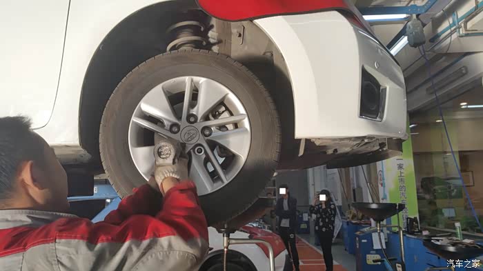 提前一天预约,下午3:30进站保养,大约进行了一个小时的时间,关键还是动平衡上废了一些时间。进门的照片还有单据就不上了,大家都一样。进工位,围裙先套上。