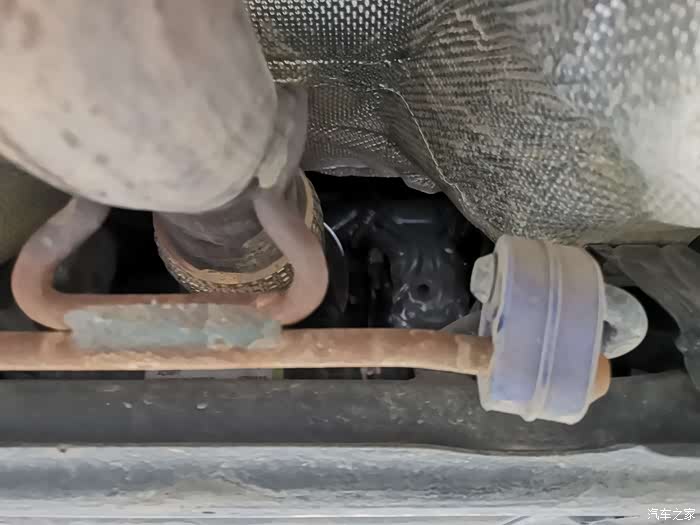 升起车辆,我建议他们逐个检查底盘、 发动机 、 轮胎 、刹车片、 转向系统。我没有装发动机护板,总是跑工地老是担心发动机底下那一块胶板有损坏,如下图发动机护板基本上没啥问题就是脏。