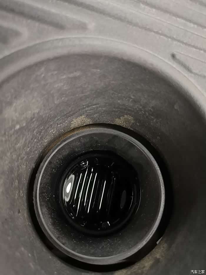 这油有点黑啊远远地看着。。。第一次保养的时候我记得油是发黄,颜色没这么重,可能是跑的太多了吧这看着颜色可重。