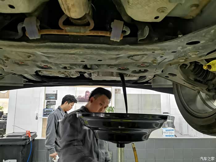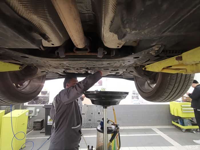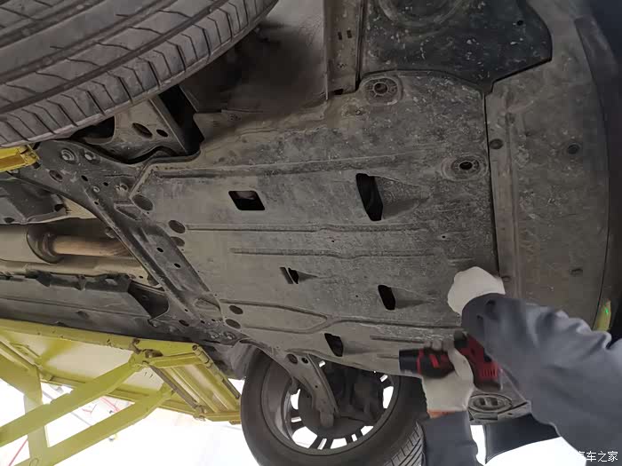 检查完以后开始卸螺丝 准备更换机滤 排放机油