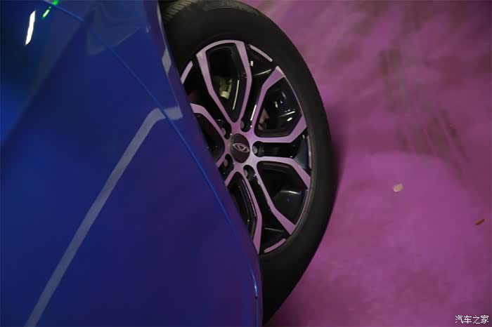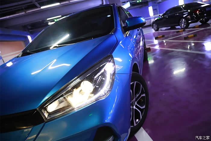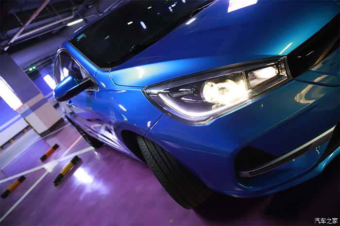 首先,我们先来看看爱车的外观部分吧。前脸部分,银色的logo与蓝色打底色相结合,大家可能还不知道的是,充电口就被完美的隐藏其中。封闭式的格栅设计也是新能源的一个标志型的设计,黑色的修饰条拉长了前脸的视觉感,前脸整体非常的立体。