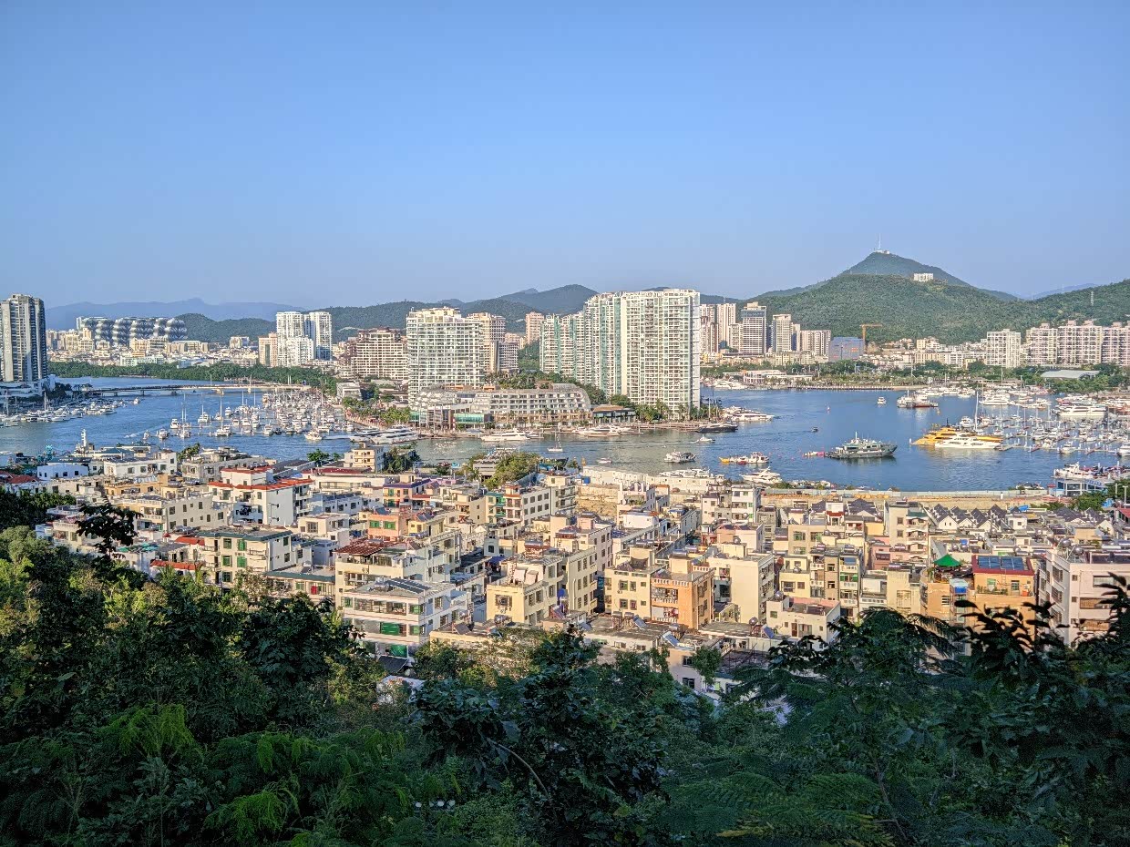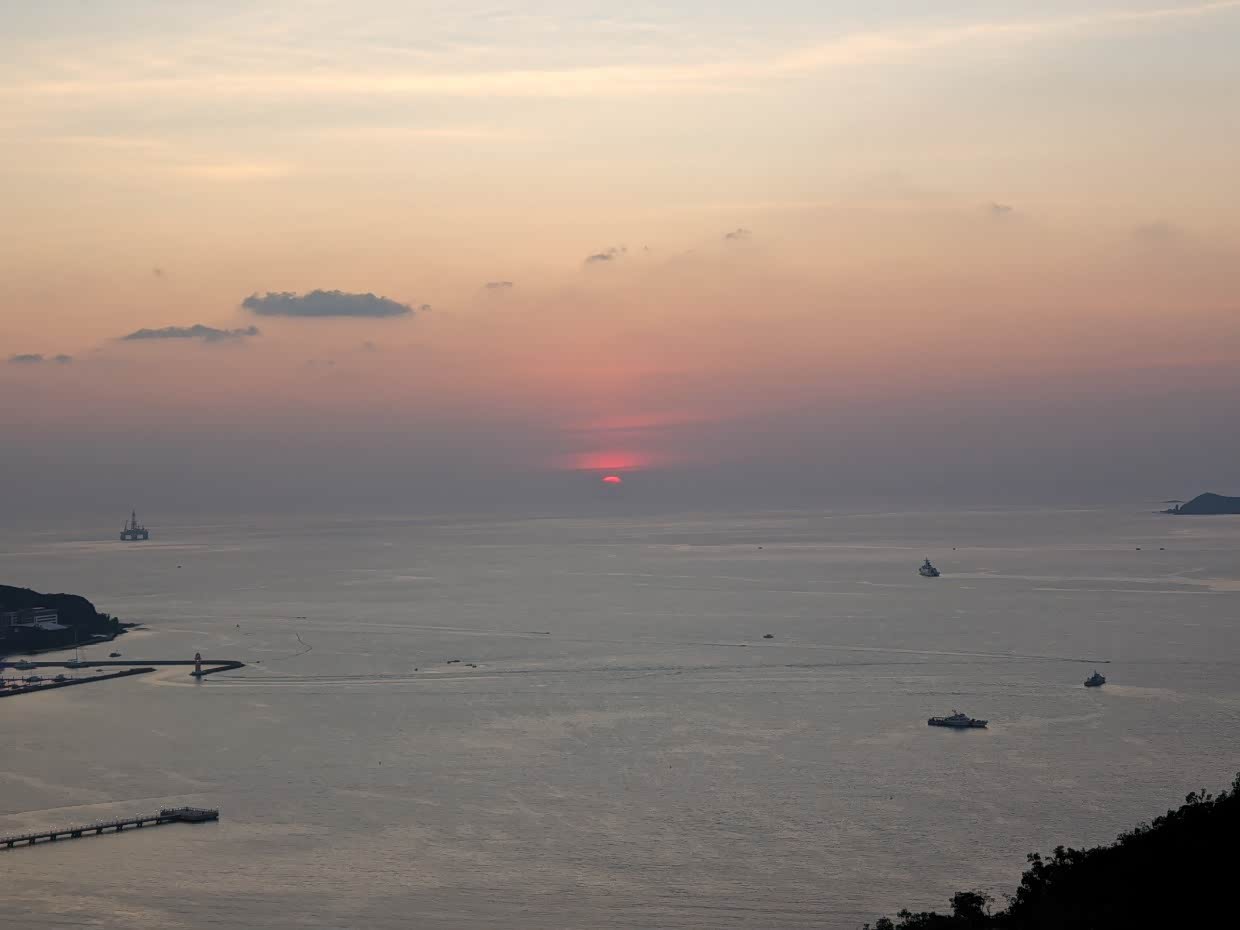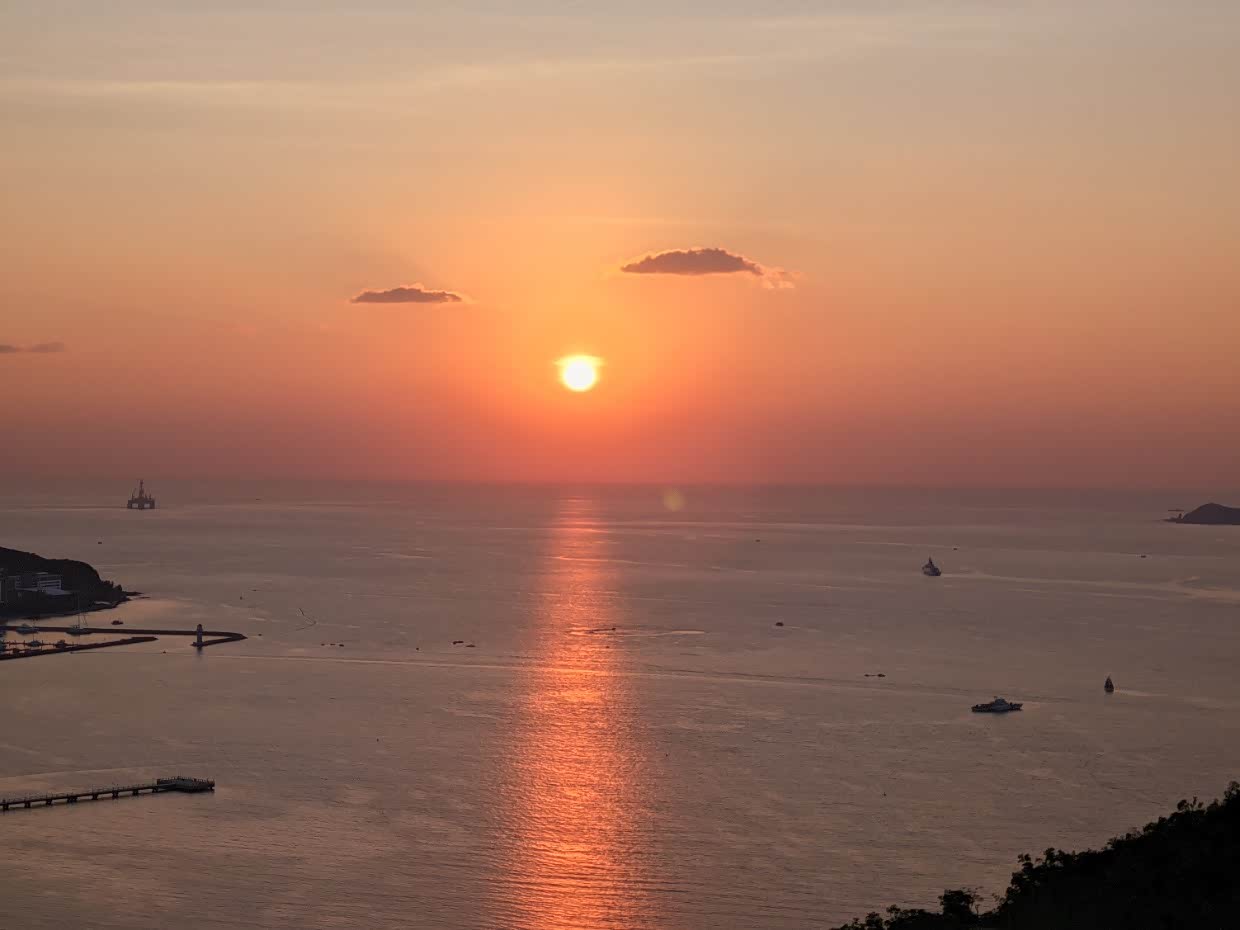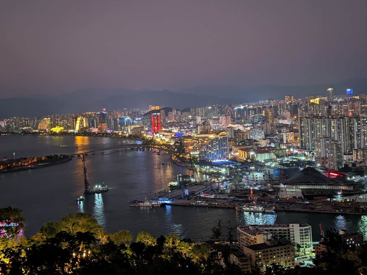 站在山上眺望,大海和城市共同构成一幅随时变换着色彩的画卷,有高楼林立,有大桥飞架,有渔舟唱晚。