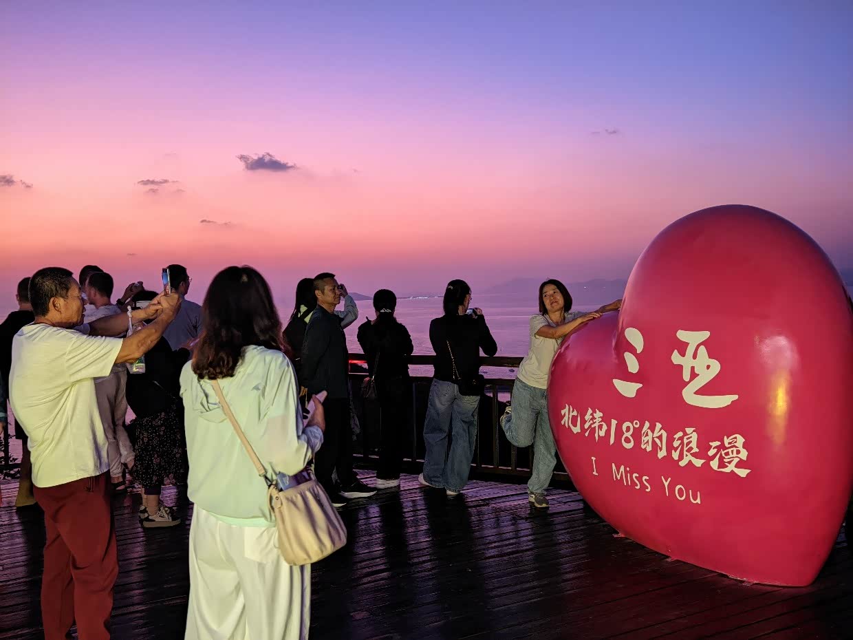 很多人会特意赶在傍晚时分来鹿回头看日落,这里视野开阔,可以360度无死角地俯瞰整个三亚的城市风貌。夕照下,蔚蓝的大海、蜿蜒的海岸线和起伏的山峦尽收眼底。