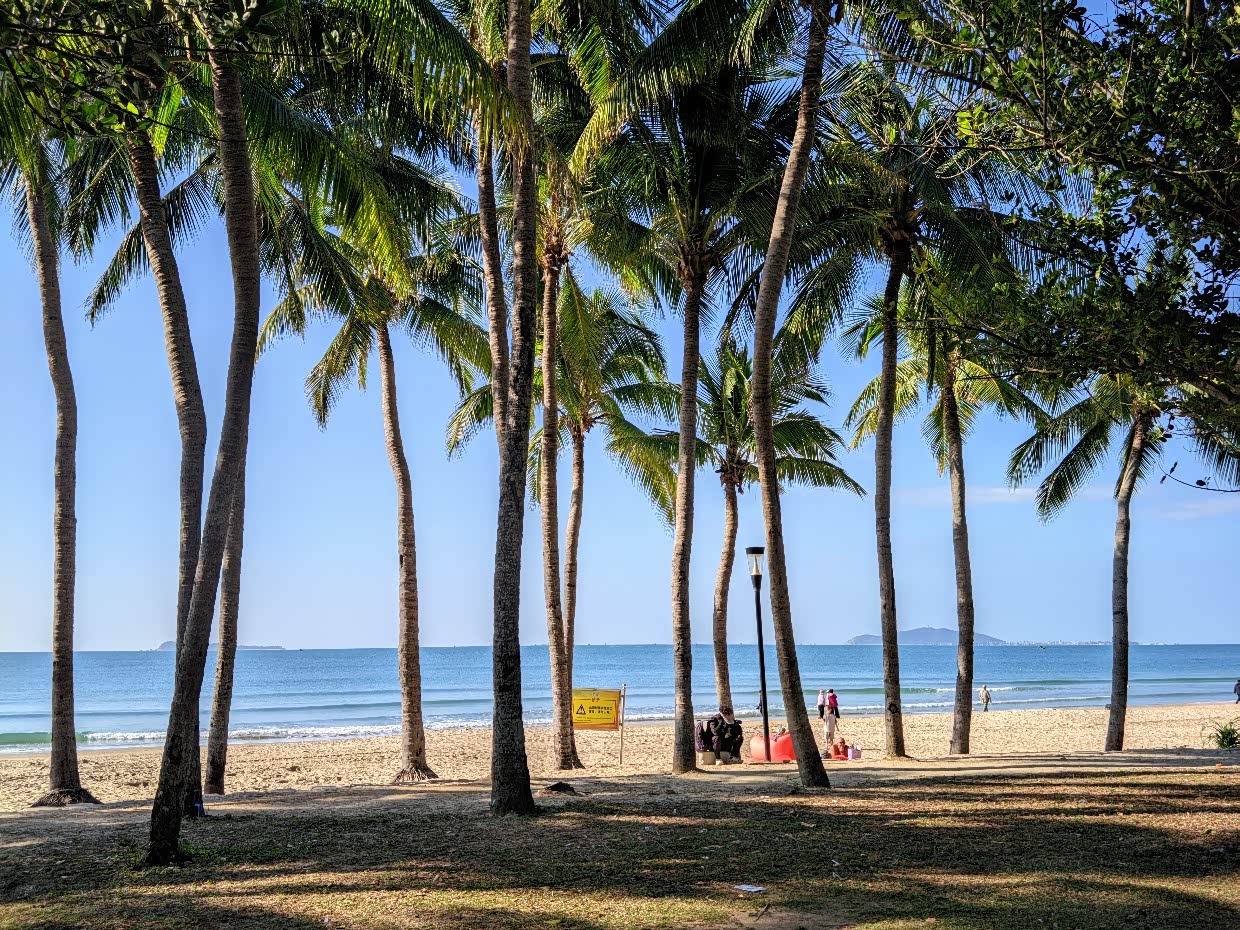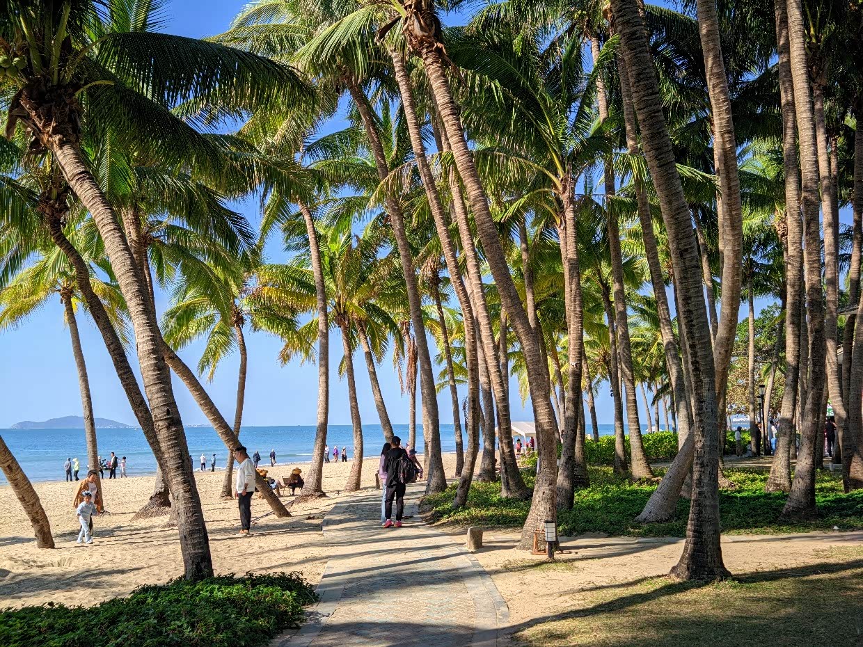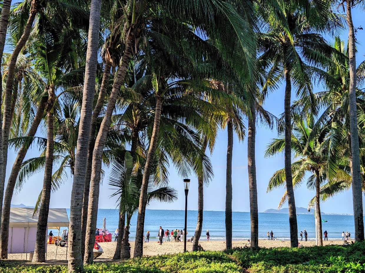 下车过马路对面,马上能看到想象中的椰树大海画面。