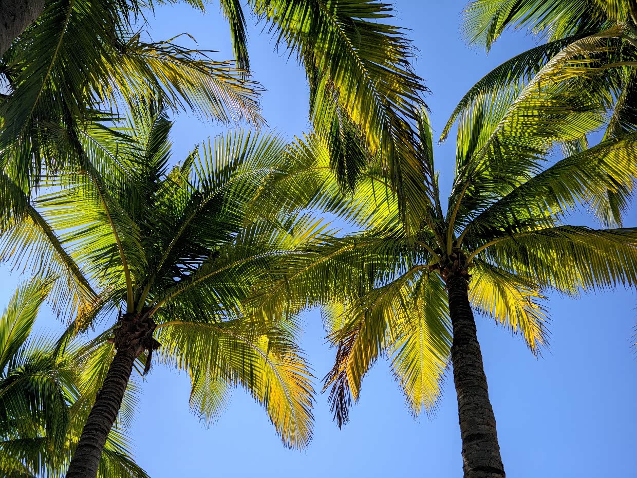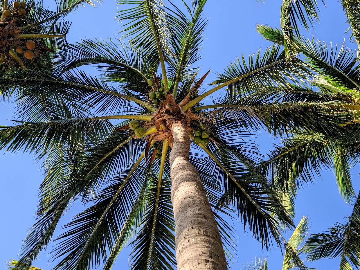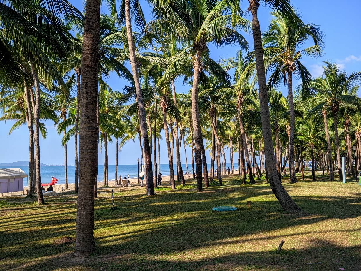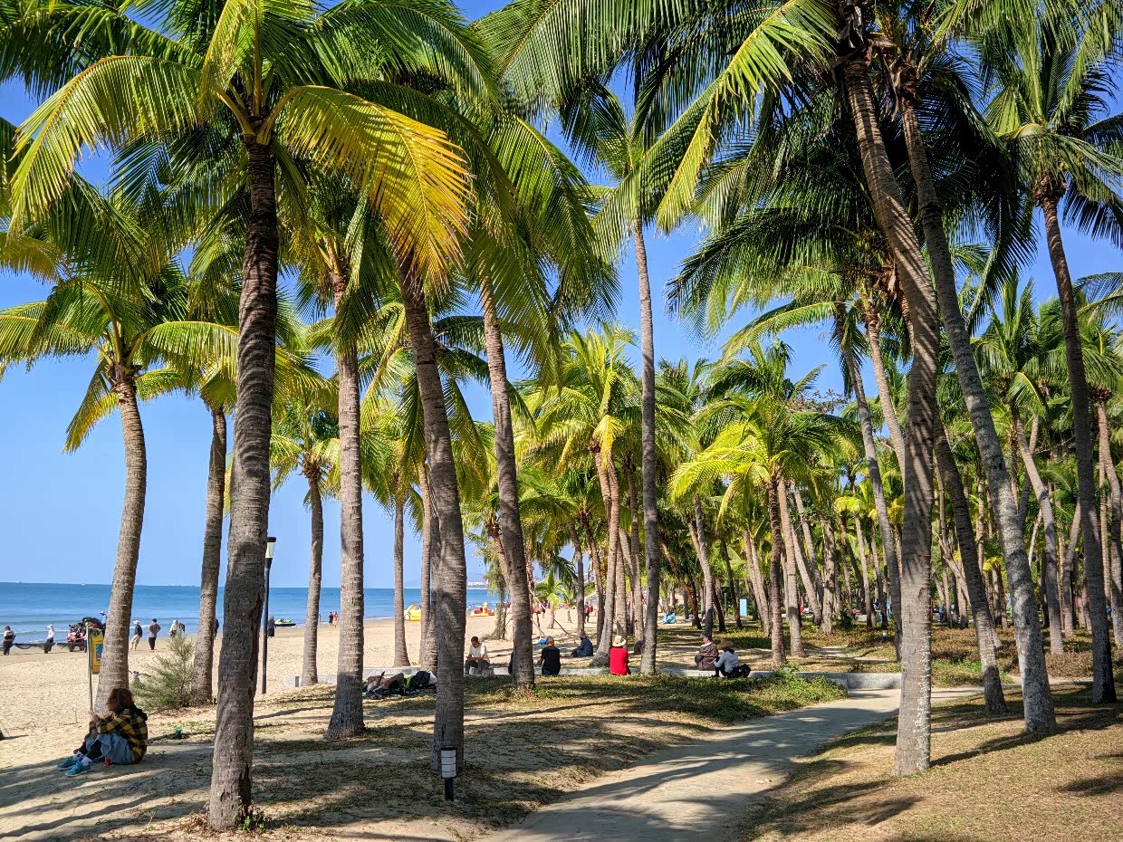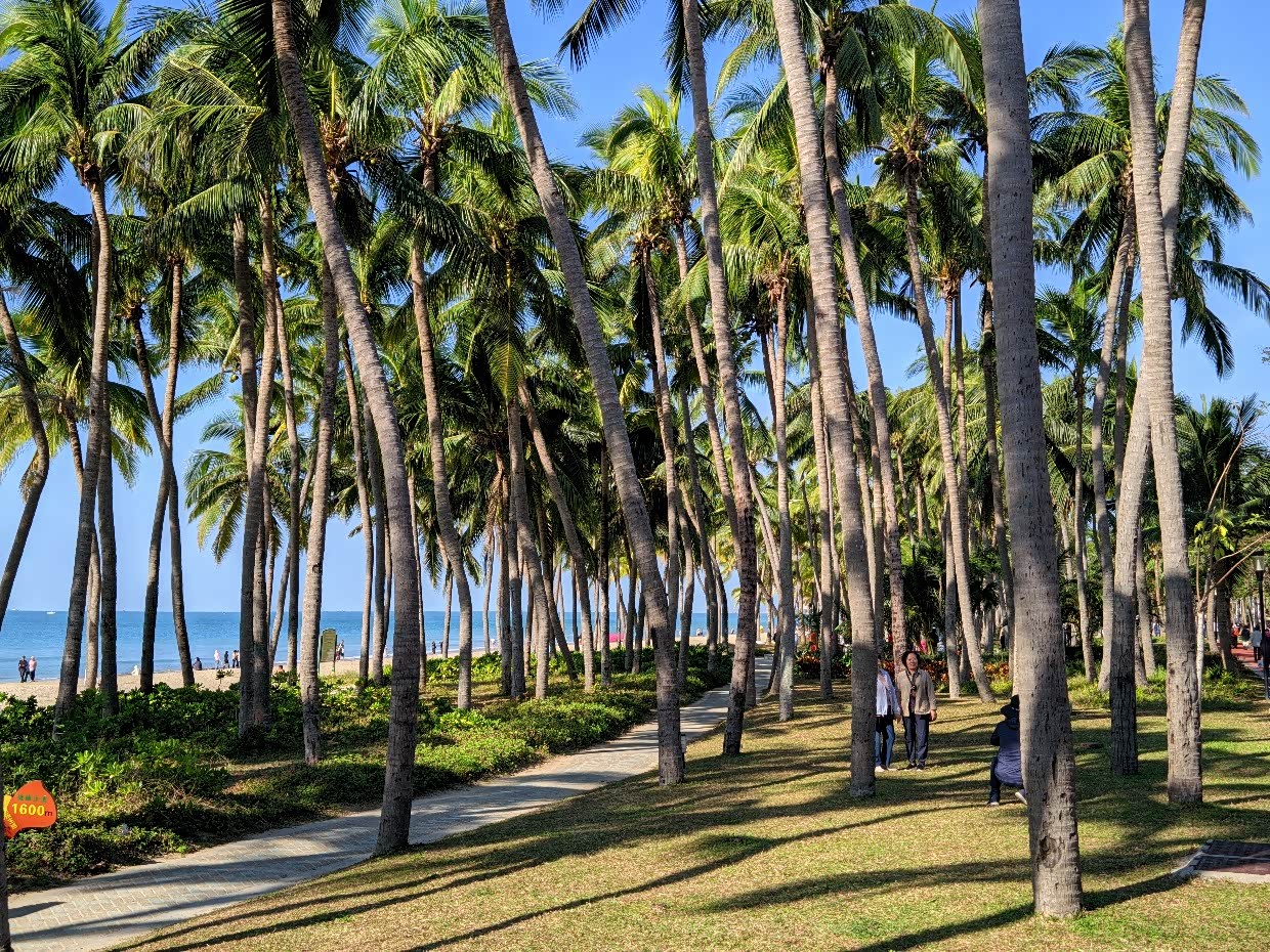 从海韵酒店,向市区方向往回走,一路走到美丽新海岸站站,路上都是椰林,很好拍照。