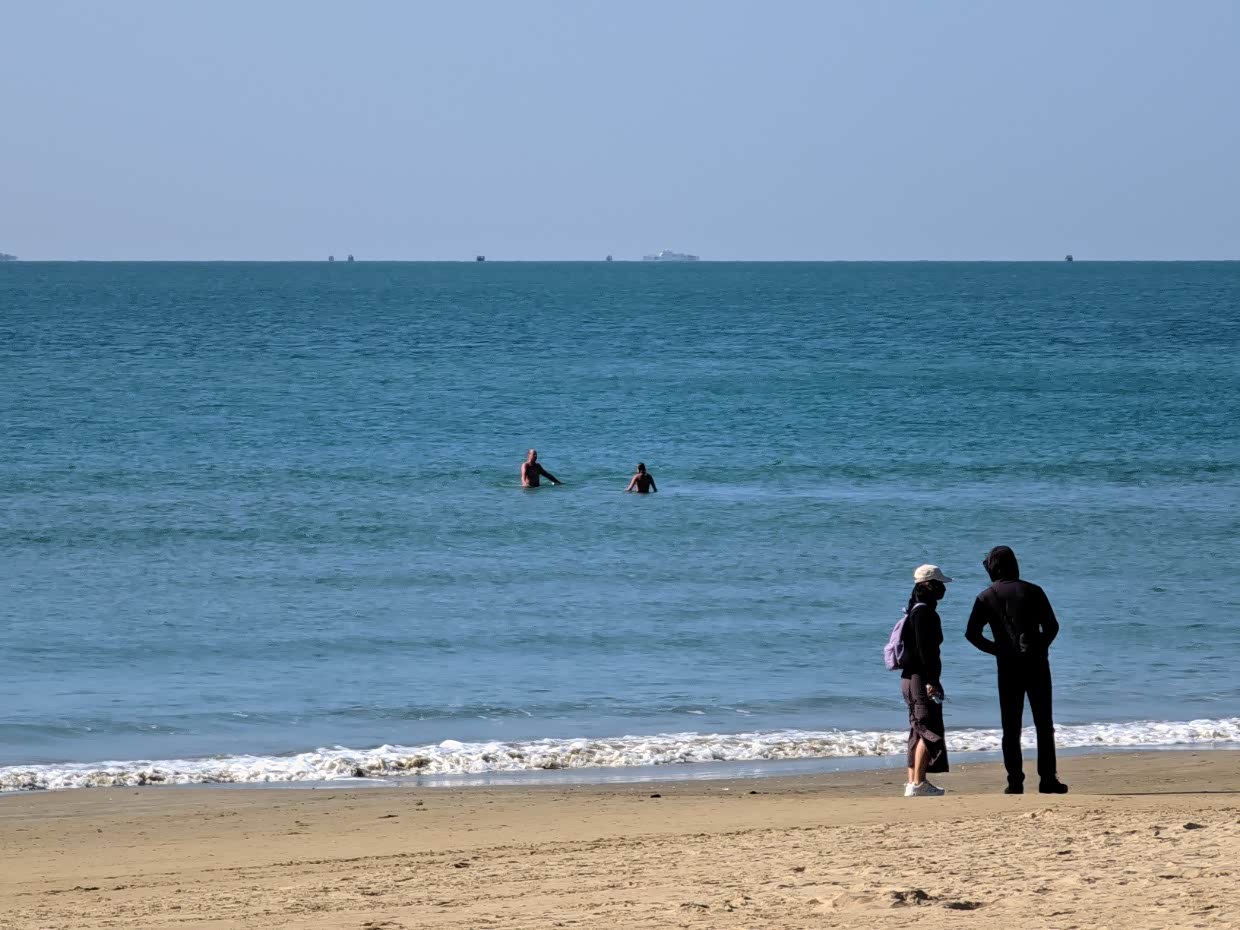 海边没有设立正式游泳区域,但有人还是下去野泳。