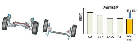 此外,D60 Plus在悬架形式上还采用了行业中较高刚性的前后稳定杆,保证车辆在转弯过程中保持着较小的车身侧倾度,同时减低了轴荷转移量,从而提升了车辆变道抓地力,无论在正常驾驶或紧急情况下车辆都能提供十足的稳定性。
