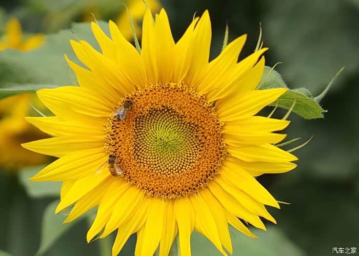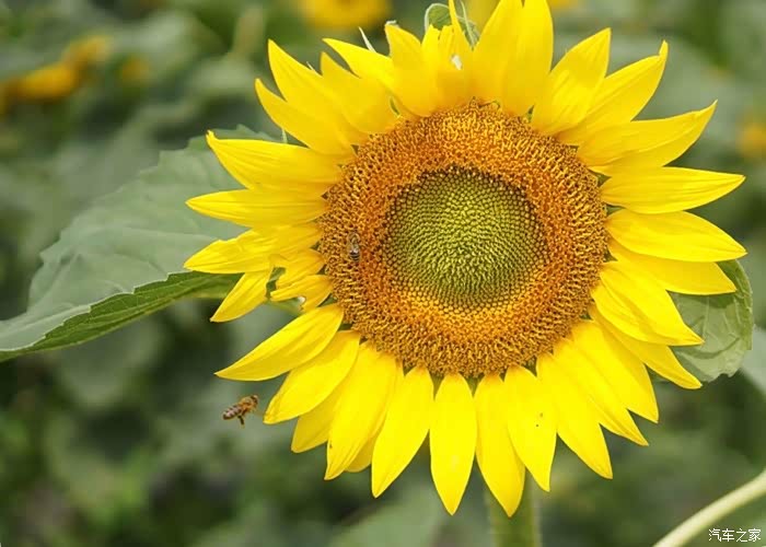 面对盛开的向日葵,蜜蜂总是最忙碌的。