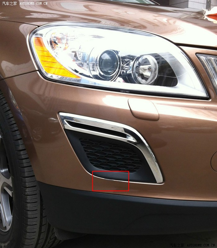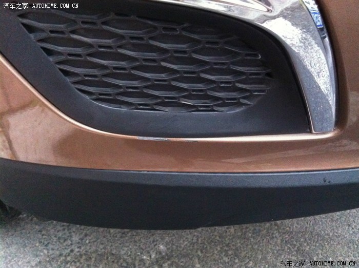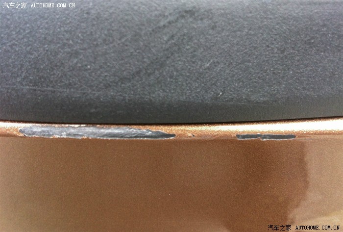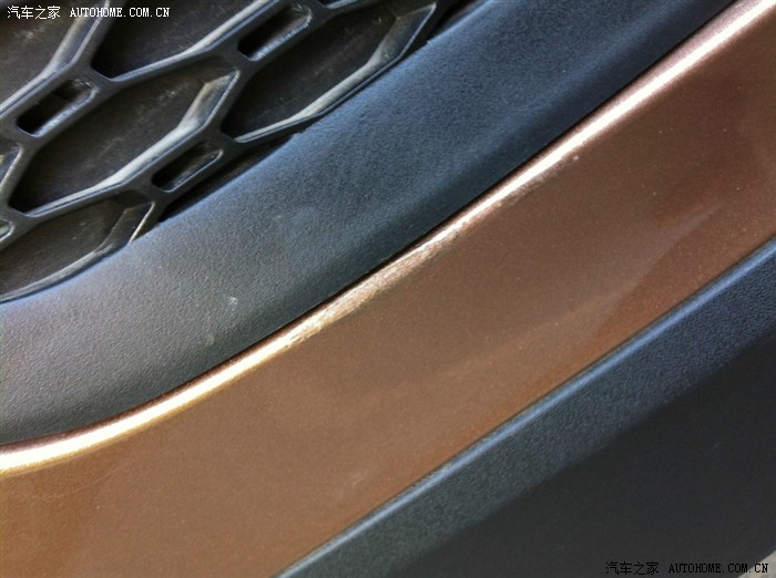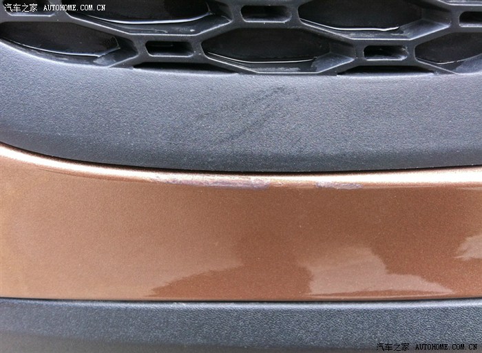 右雾灯罩底部的黑塑料有些划痕,但不明显,打了些表盘蜡就看不出划痕。 但它下面的车漆缺完全被蹭掉,露出黑色的塑料材质。