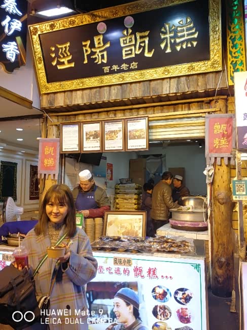酒足饭饱之后,本想带着孩子溜溜,可是雨一直下,天气也有点冷。孩子鞋也湿了,于是好歹转一下就回去了。从回民街不行10分钟到酒店,到还算方便。临走之前媳妇一定要买一个小吃——镜糕,字忘了,是这么叫