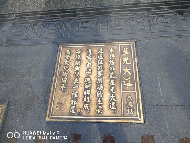 一进门是这个星光大道,由58块铜牌组成,还蛮有特色。中午来永兴坊正好,因为这实际上就是一个小吃街美食巷