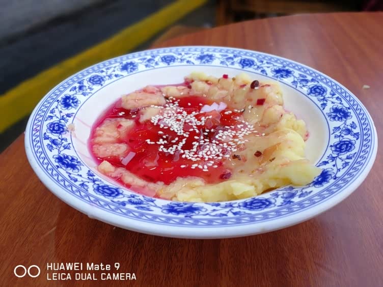 第三个吃的这个何老太酿皮,真是味道不错,排着很长的对,大概等了15分钟才吃到,这边都是先收钱,再排队拿。给了钱,拿了小票也要等着拿,据说这个何老太酿皮挺牛,看这上面老梁,韩红,蒋大为,一堆明星都来吃过。10块一碗,不错。