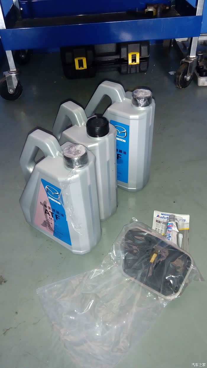 然后说说这次更换自动变速箱油,在更换前D档、3进4档时,偶尔略有撞档的情况,但不太严重,但是比之前是明显了好多,排除变速箱故障之外,就是自动箱的助力油好换了。 老70用的是马自达6的动力总成,所以换变速箱油要采用经过M-V认证的油,强调一下,更换任何品牌的自动变速箱油,不是像换发动机机油一样,啥都成,或越贵越好,哪种品牌的变速箱只能使用哪些规格标准的助力油,不是随便换。 老70要M-V认证的助力油。市场上M-V认证的油在售的不多,安索有,但贵了些,再就是OEM的4S用油了。 我采用了OEM 马自达4S用油,以及马自达6的自动变速箱滤芯。