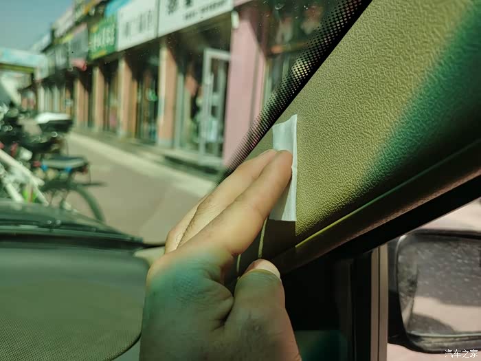 揭开一面彻底粘贴在杂物盒粘贴面上