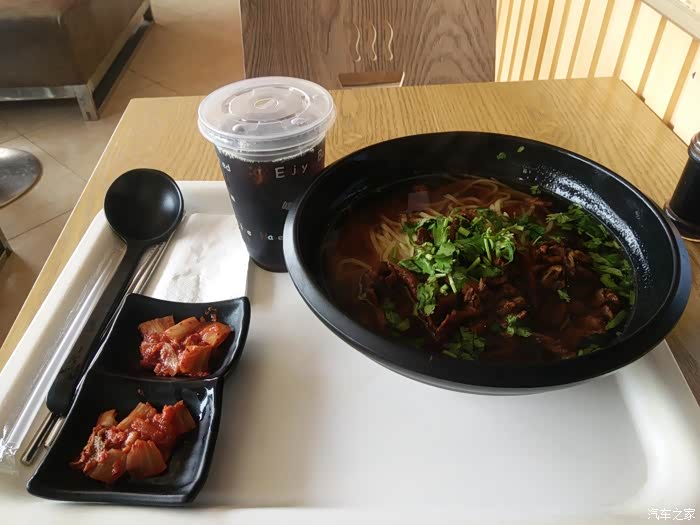 因为下午返回准备高速,所以必须要把电充一些,不敢直接剩余55%的电量返回,我大概是8点半到的,一直到11点,车辆才保养维修完成,赵师傅把电给我冲上后,我利用充电时间,在外面转转,顺便找地方解决肚子问题。