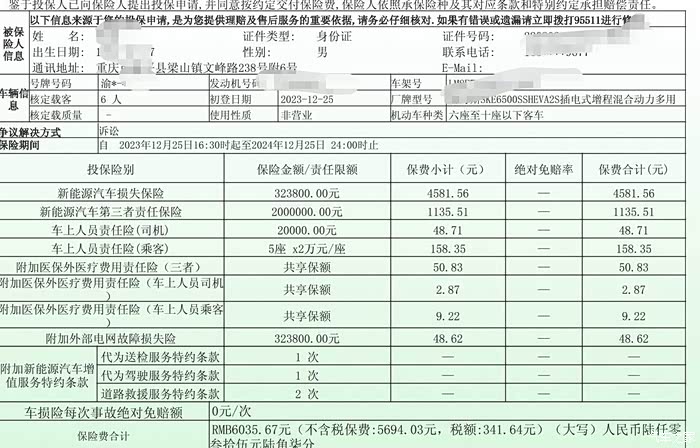 交强险和商业险一共7100,太贵了,是以前油车保险的两倍,不知道我这个是不是买贵了。